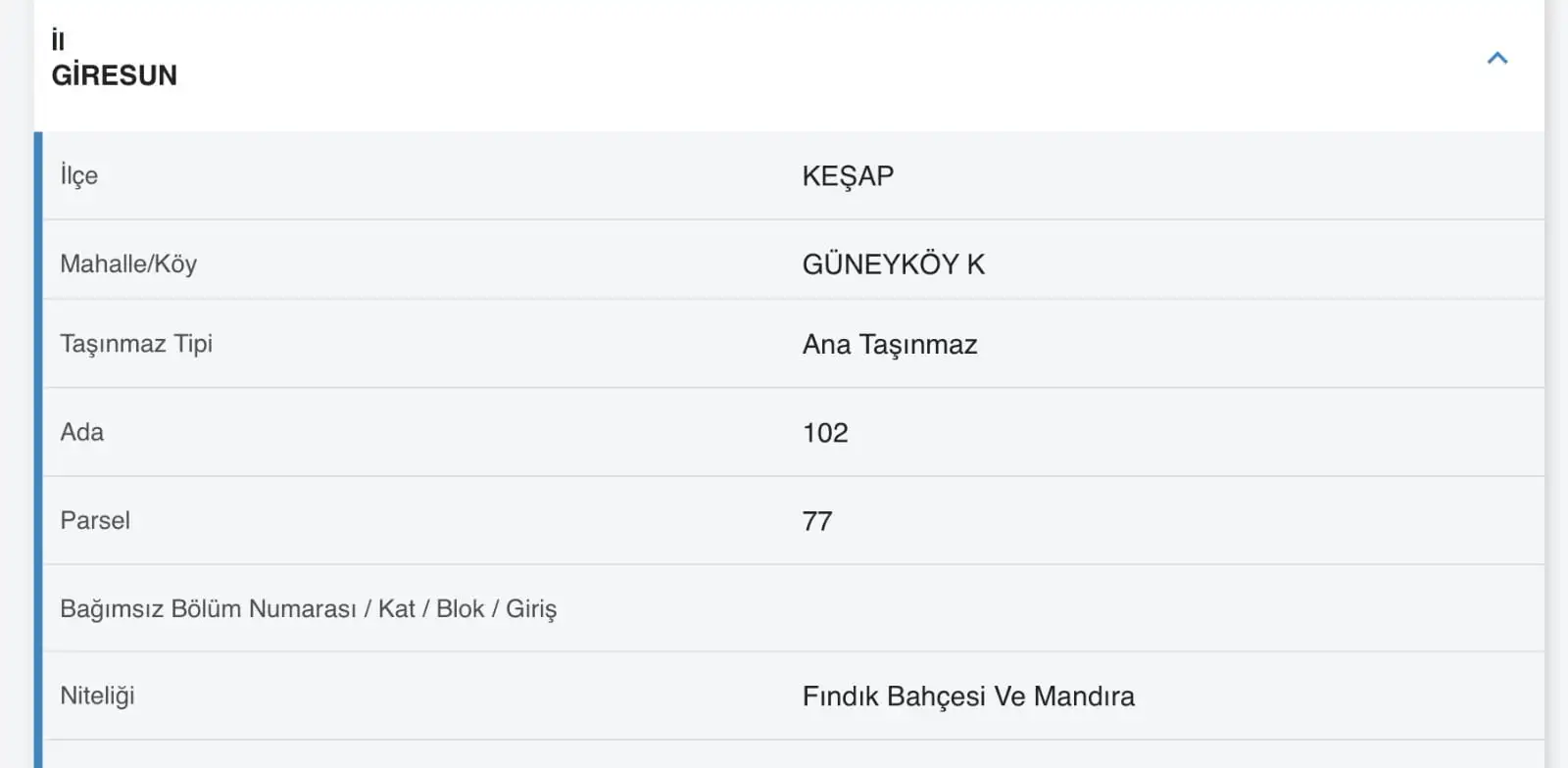 Giresun / Keşap / Merkezköyler / Uzunkum Mah (Güneyköy Köyü)